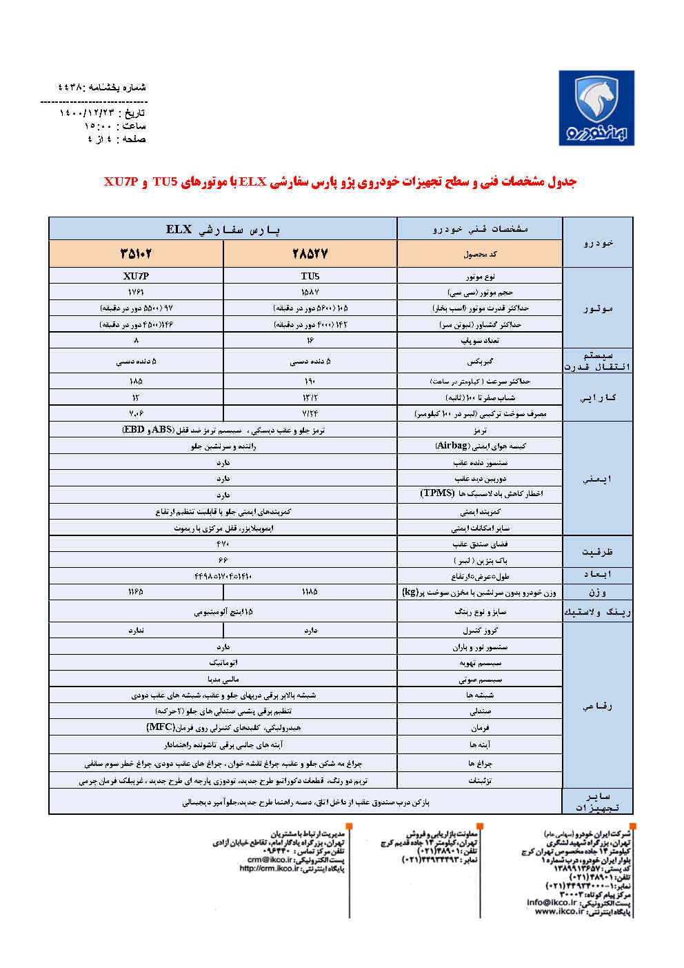 شركت ايران خودرو در راستاي ارتقاي استانداردها و بهبود سطح كيفيت محصولات و با توجه به محبوبيت خودروي پارس در بين خانواده هاي ايراني و در جهت پاسخگويي و همسويي با نياز و افزايش رضايتمندي مشتريان ، خودروي جديد پژو پارس سفارشي ELX با 2 نوع موتور TU٥و XU٧P را روانه بازار خواهد كرد.