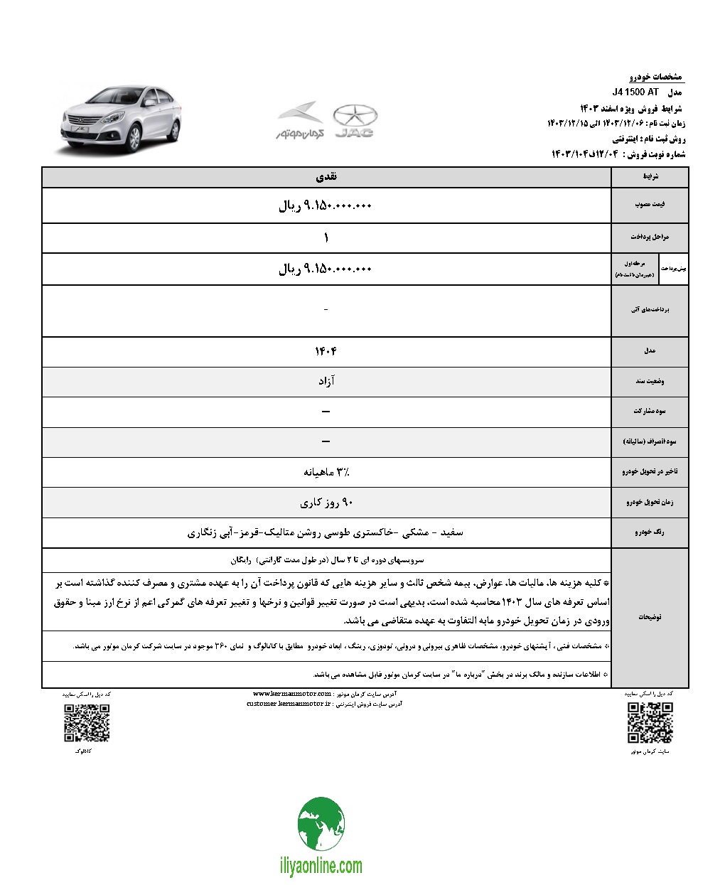 | دانلود شرایط فروش کرمان موتور ( j4 ) نیمه اول اسفند با لینک مستقیم |