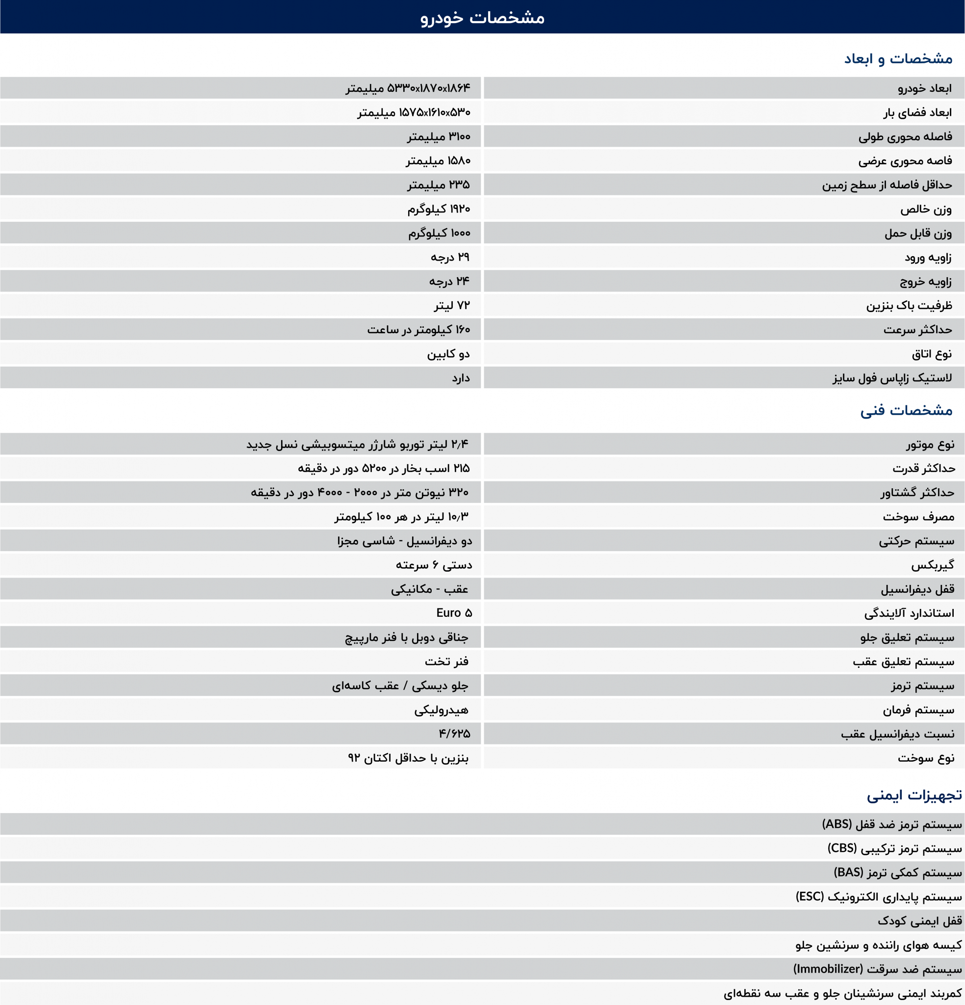 پیکاپ کلوت با پیشرانه قدرتمندتر ۴ سیلندر توربوشارژ با حجم ۲.۴ لیتر و قدرت ۲۱۵ اسب بخار دارد و گشتاور تولیدی این موتور نیز دارای رقم قابل توجه ۳۲۰ نیوتن متر است که کلوت را در میان رقبا به یکی از قوی ترین ها از نظر قدرت موتور تبدیل میکند.