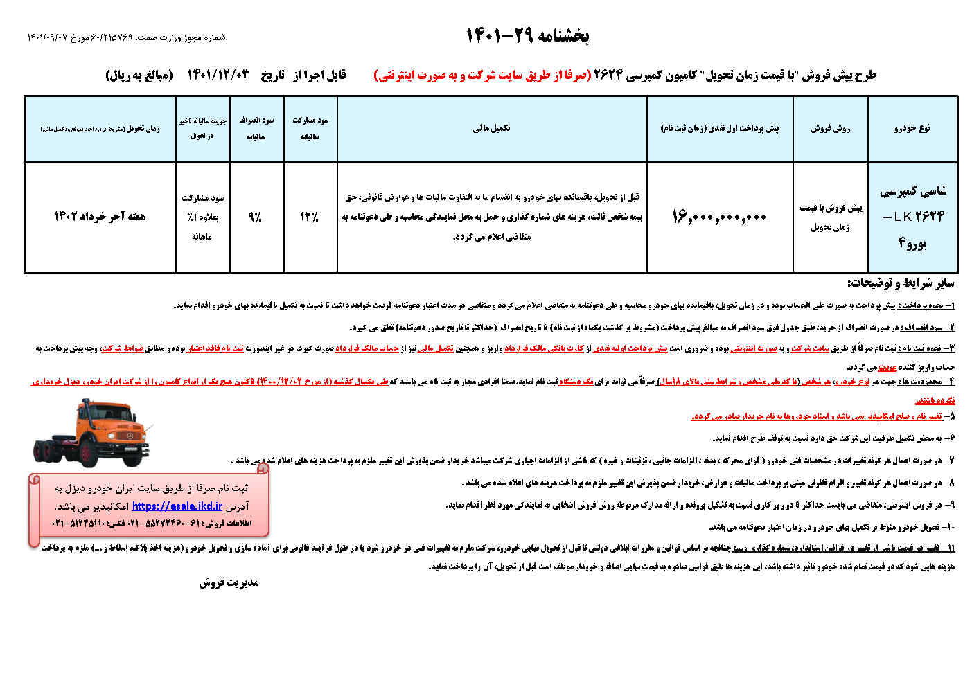بخشنامه 29-1401: طرح پیش فروش کامیون کمپرسی 2624