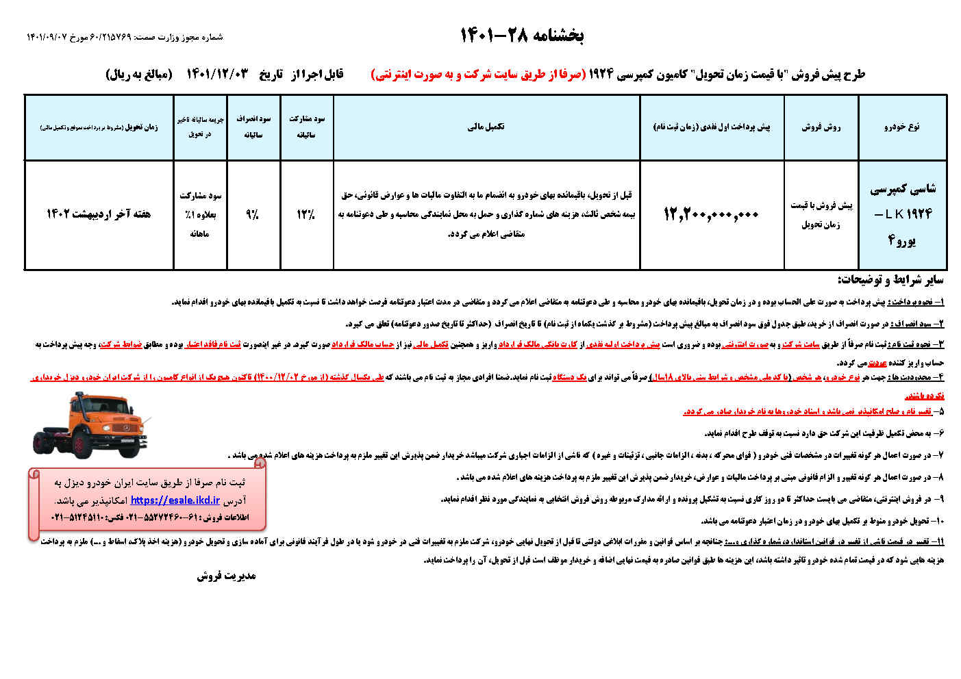 بخشنامه 28-1401: طرح پیش فروش کامیون کمپرسی 1924