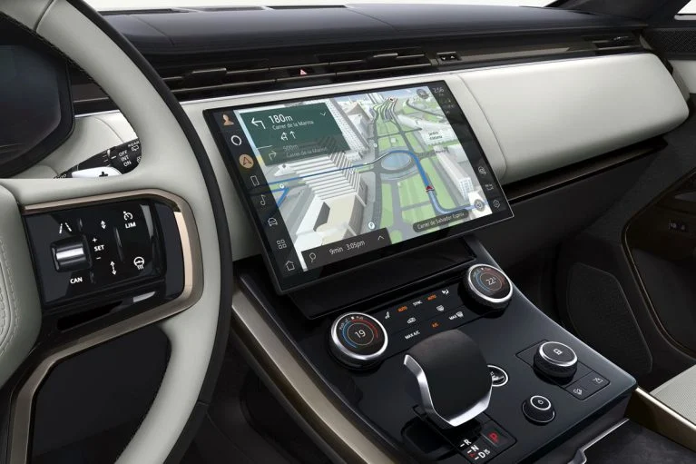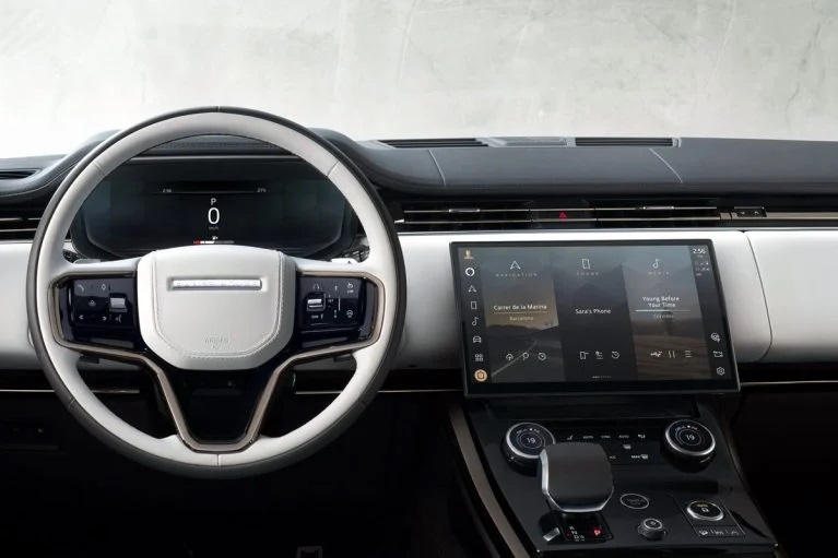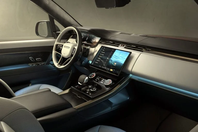 در طراحی داخل نیز ارتباط واضحی بین رنجروور اسپرت جدید و رنجروور بزرگتر به چشم میخورد اما در اینجا نمایشگر سیستم اطلاعاتی-سرگرمی و کنسول میانی با شیب بیشتری طراحی شدهاند تا نشان دهند رنجروور اسپرت قرار است بیشتر روی پرفورمنس تمرکز داشته باشد. در داخل این خودرو همچنین سرنشینان از فضای پای بیشتر، تنظیم ۲۲ جهتهٔ صندلیها با ماساژور، سیستم تصفیه هوای پیشرفته، سیستم صوتی سفارشی مریدیان ۱۴۳۰ واتی با ۲۹ بلندگو، سیستم فعال مقابله با سروصدا و صفحه آمپر دیجیتالی ۱۳.۷ اینچی بهرهمند میشوند.