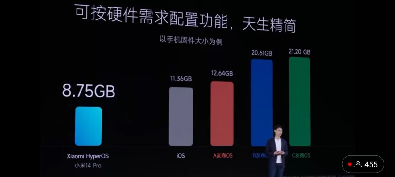 نکته قابل توجه دیگری که باید به آن اشاره کرد، حجم سیستم عامل HyperOS شیائومی است. همانطور که در تصویر بالا قابل مشاهده است، این سیستم عامل فقط 8.75 گیگابایت از فضای گوشی شما را اشغال خواهد کرد که با این وجود از رقبای خود مانند iOS نیز سبکتر است.